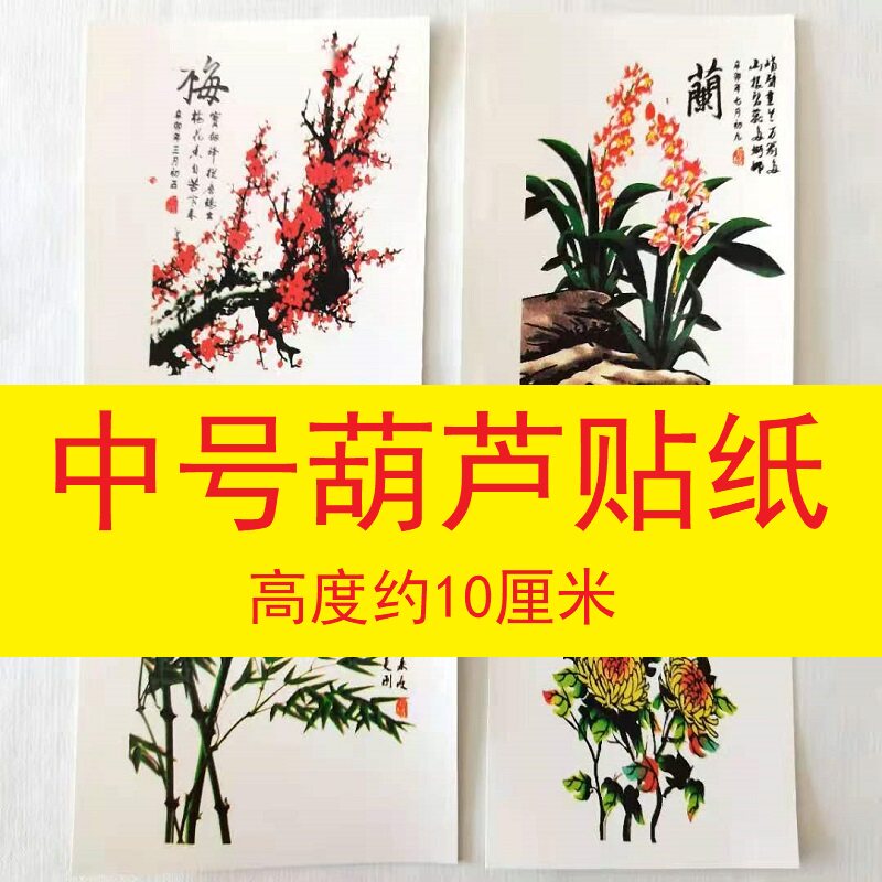 天然中号葫芦贴画梅兰竹菊 非遗烙画手工彩绘装饰品水墨花卉年画热门设计联盟服务商